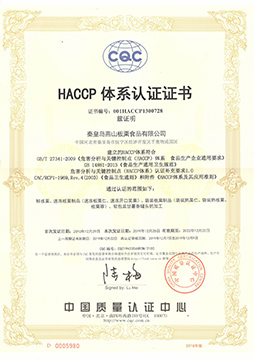 2015年 --→ 取得美國FDA的FCE-SID注冊號碼。 公司還通過了ISO 9001:2008 質(zhì)量管理體系認證、HACCP 體系認證。