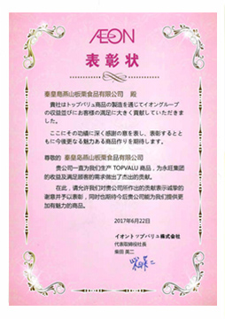 2017年 --→ 被日本亞洲零售商“永旺集團”評為食品企業(yè)優(yōu)秀供應(yīng)商。
